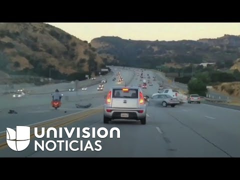 Un testigo, que grabó el siniestro, explicó que un motorista y el conductor de un automóvil Nissan mantenían una disputa en en la autopista 14 en la ciudad de Santa Clarita que provocó una fuerte colisión.